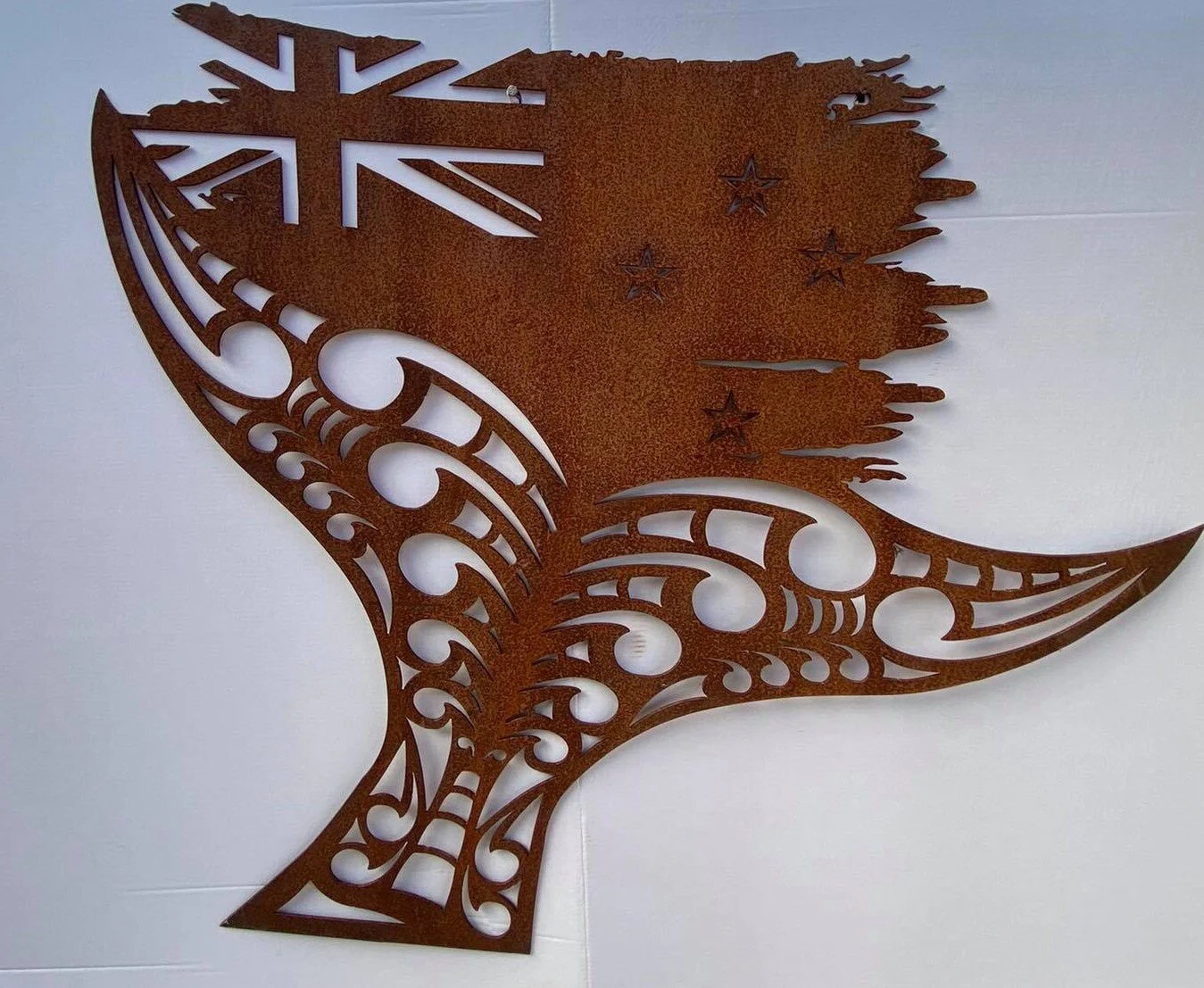 This NZ inspired piece looks amazing now coated in a patina. This is a true nautical NZ statement. Have this piece stand our on your wall. This measures 1100mm high by 1180mm wide.. Supplied as Raw CorTen steel so not yet coated in the patina as pictured. Smaller version available seperately in either wall hanging or freestanding. This one is too large to freestand so only available as wall hanging. CorTen Steel is a quality steel that is a weathering steel and will last you decades! The Patina protects the steel so it won’t degrade.